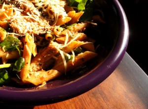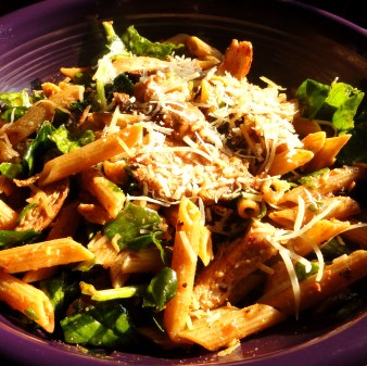 - 1/2 Box of whole wheat Pene pasta (The Hubby likes this type because he says it’s easy to stab with a fork)