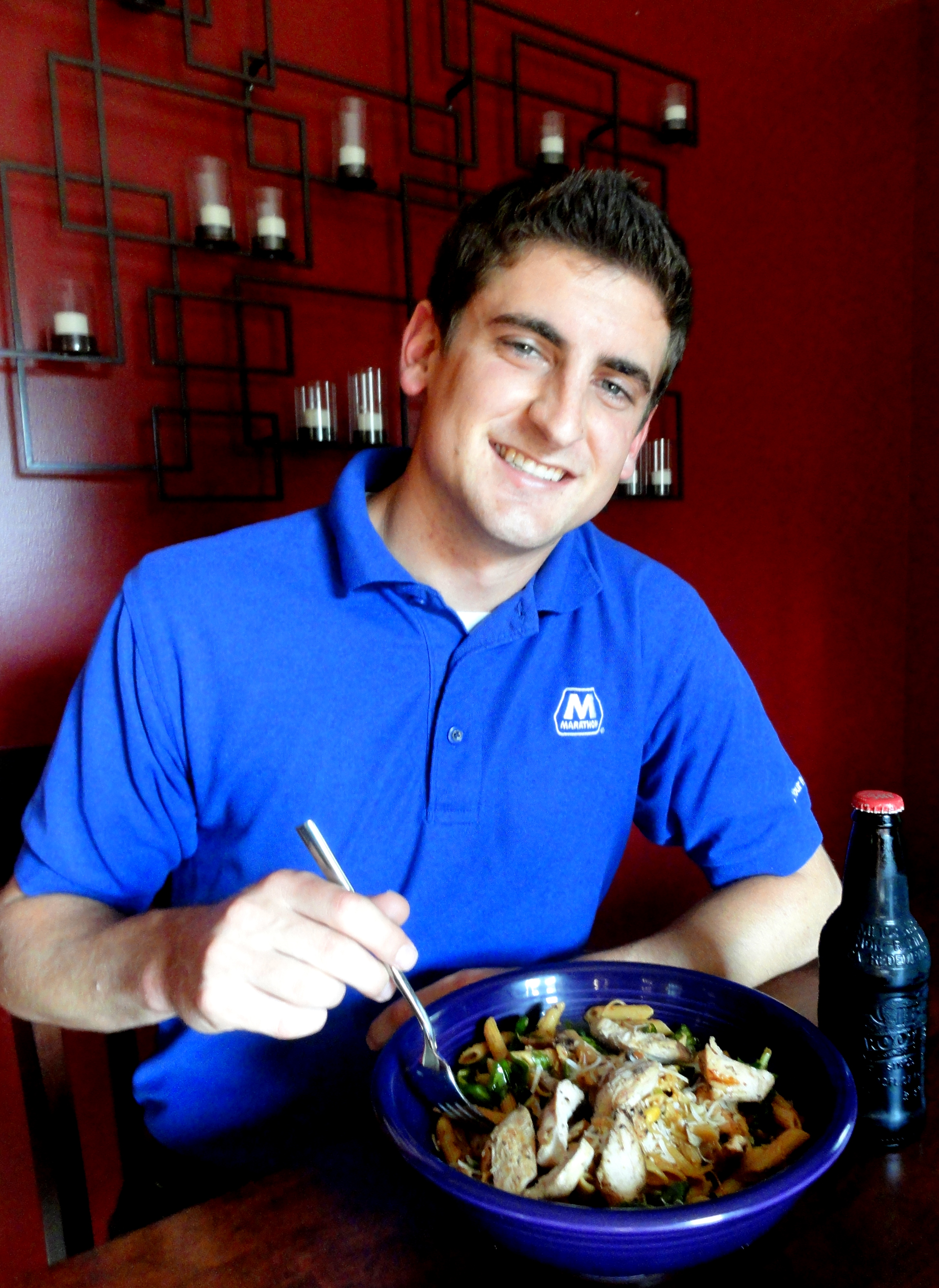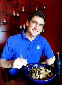 - Marinate Chicken in dressing, grill, and slice into bite-sized pieces, set aside and keep warm