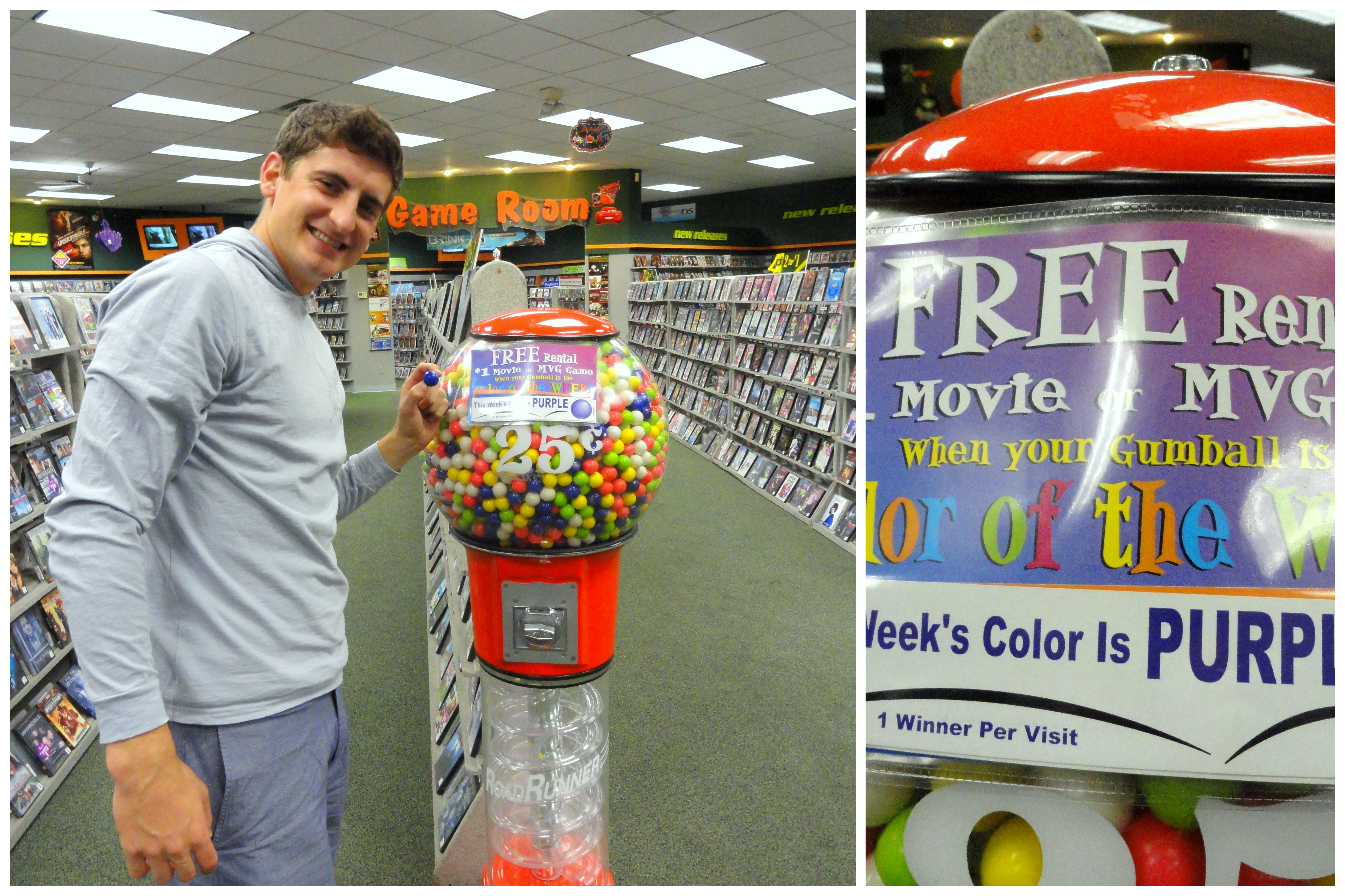 On a side note, the Husband’s purple gum ball won us a free movie last night. Made his week ; )