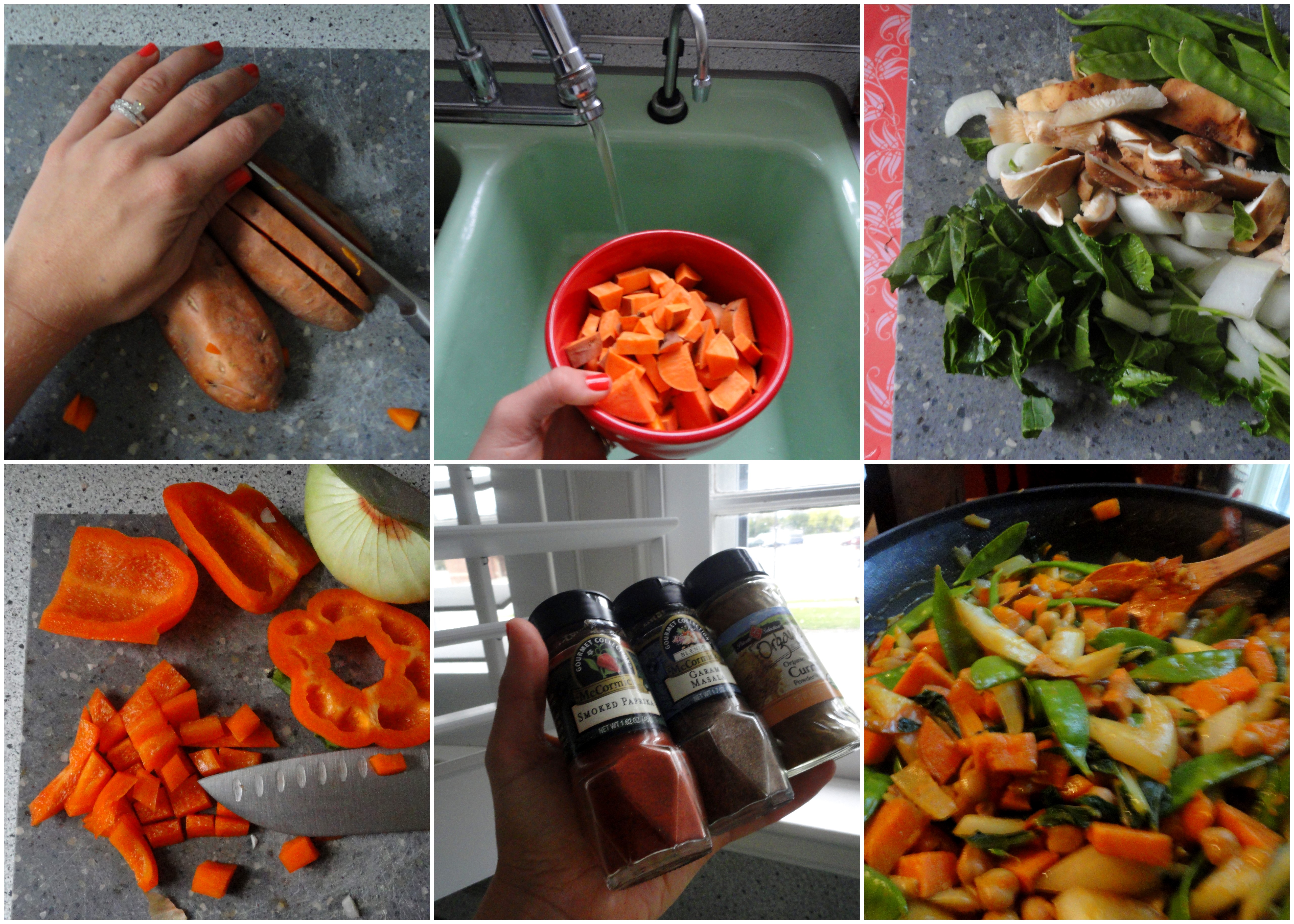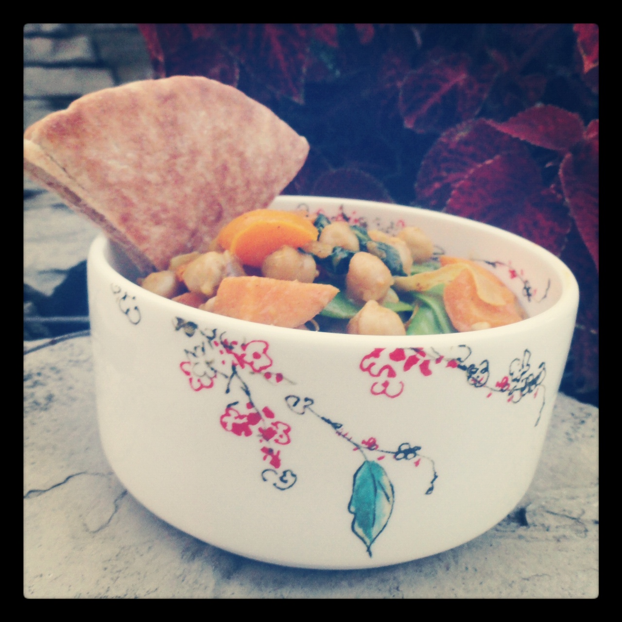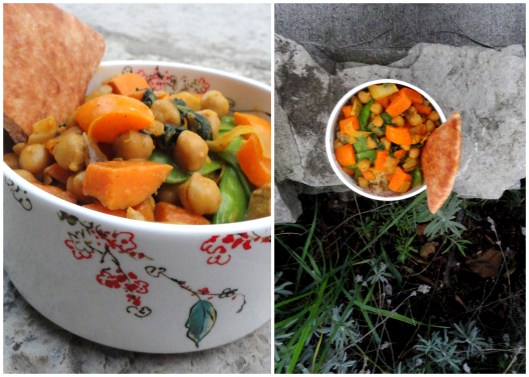 Real curry enthusiasts will cringe and squirm at this concoction, and I don’t blame them. But, If you want something fast and flavorful, this will do in a pinch. You can use ANY of your favorite vegetables in this dish (or whatever is languishing in your fridge). The only thing I think you should absolutely stick with is the sweet potato. Best part.