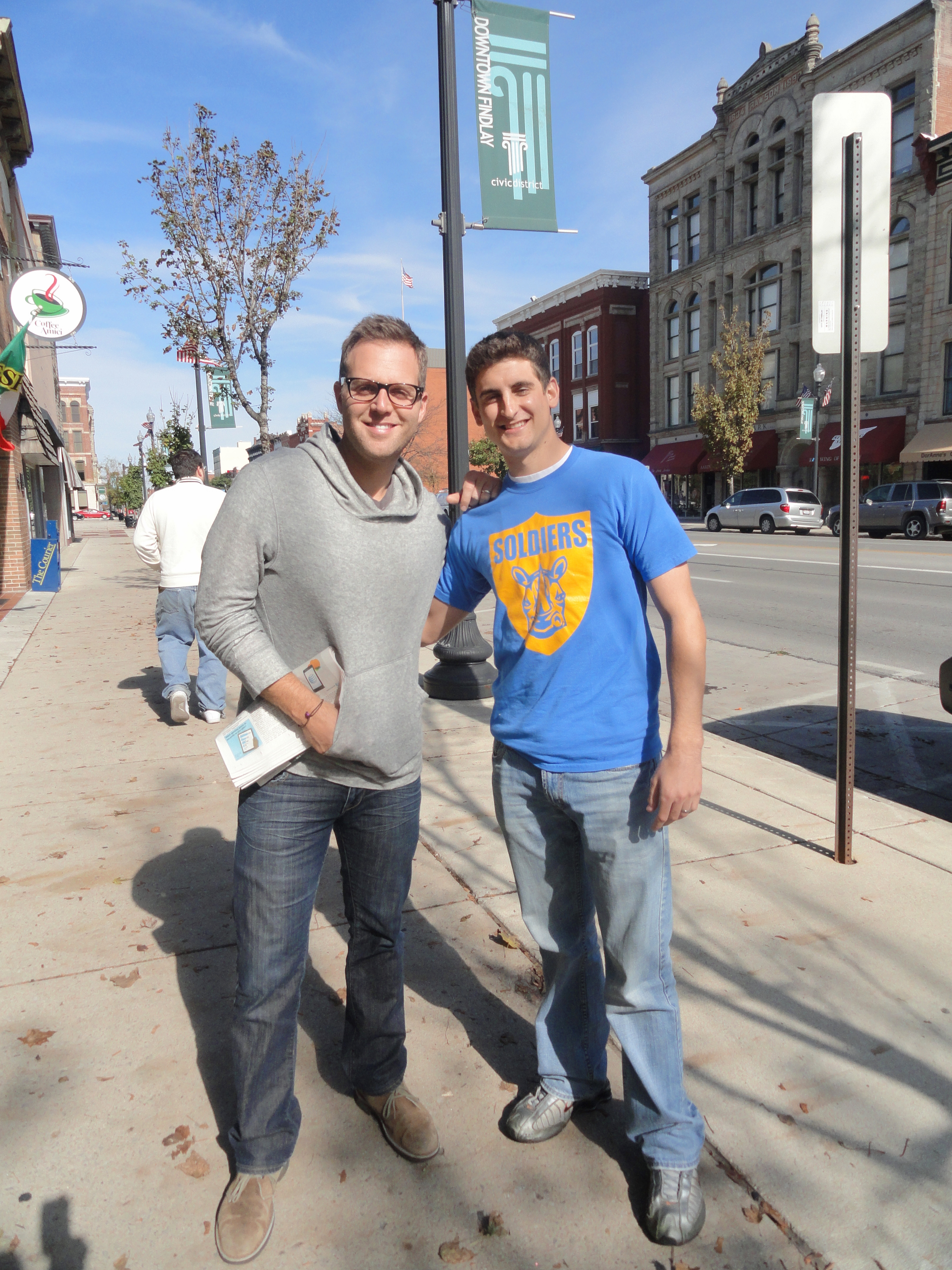 I turned around, and saw a two gentlemen with glasses as the table. It was Matthew and his father! He introduced himself to the waitress (She turned out to be a big fan of his!). We sat quietly and listened as they talked, and she snapped a photo, but knew that we wanted to say hello before we left. We were looking up his songs and bio on my phone, when we turned around and saw that they had slipped by us and walked out the door!