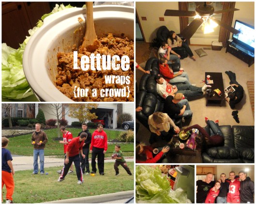 This surprising dish is no exception. Thanks to my good friend Steph’s lovely and talented mama, the Husband and I were introduced to her lettuce wraps at a Birthday party. It was Cole’s 25th Birthday, to be exact, and there was football, beer and lots and lots of boys there. And, they loved each and every healthful green-wrapped bit of the stuff.