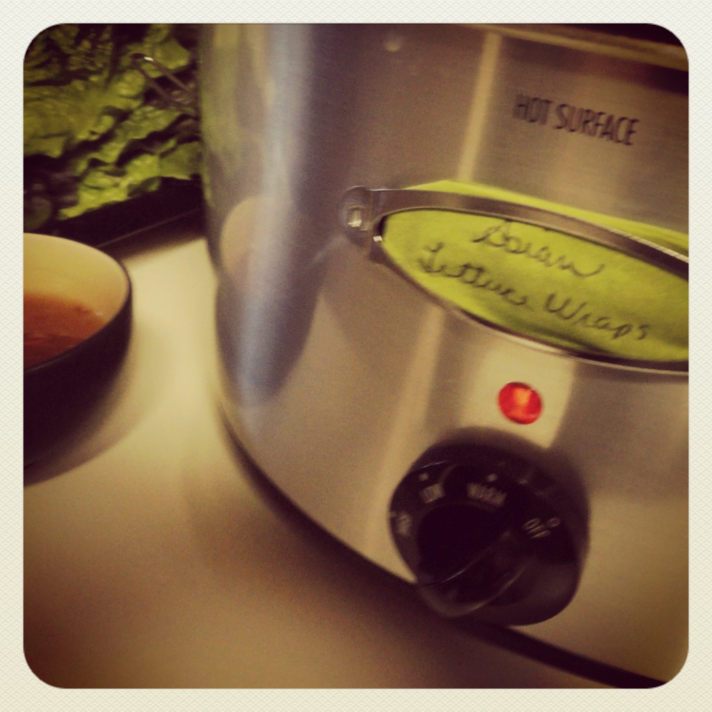 - If you plan to eat immediately, arrange lettuce leaves around serving platter & pile meat in the center. For a crowd, simply transfer the mixture into a crock pot and set on low until you’re ready to serve!
