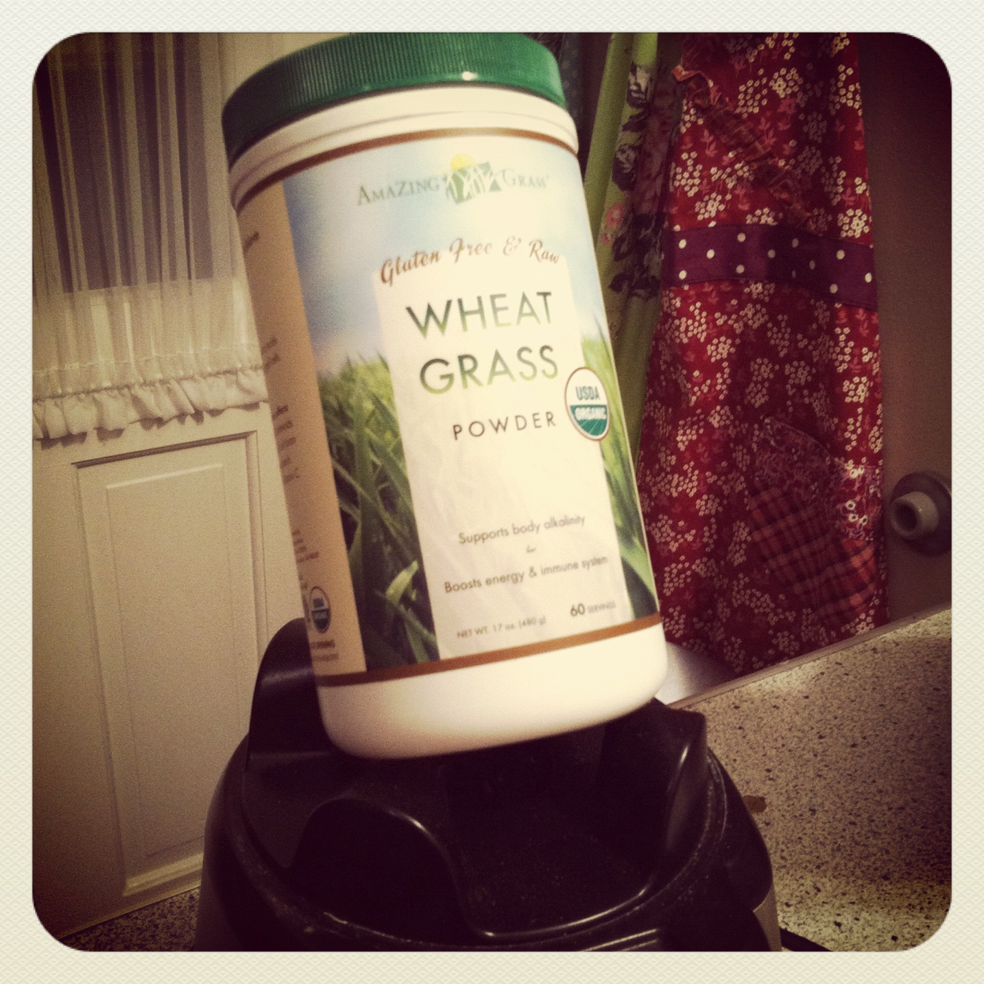 - 1 scoop wheat grass powder (I like Amazing Grass Wheat grass powder. They have a lot of great products for kids and adults who need a little green in their lives. Or, substitute a few handfuls of fresh spinach)