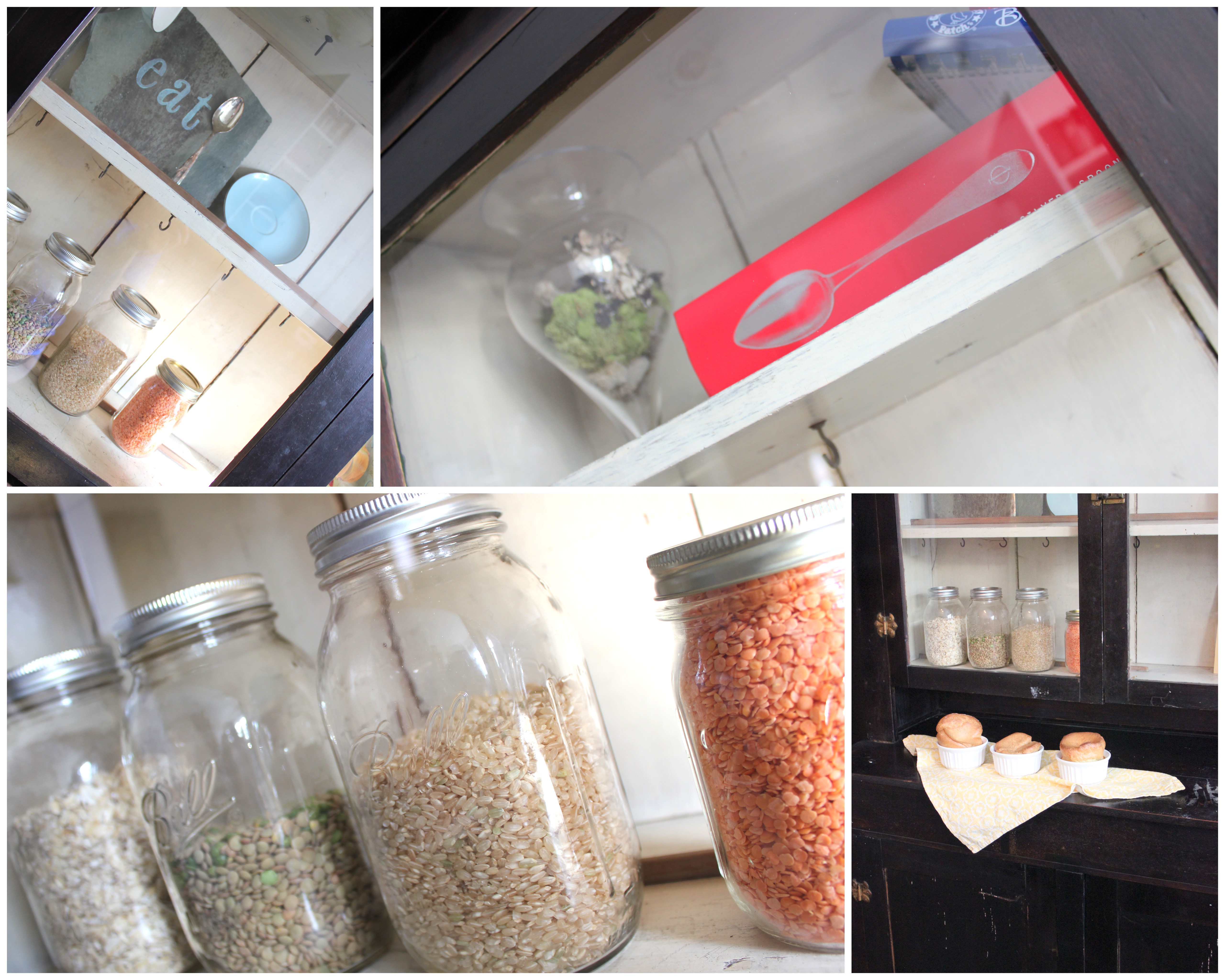 {Did you happen to notice my lovely, new “toy”? We found this antique hutch for a steal over the holidays at a little shop called the “Swanky Abode”. So fun, such a beautiful backdrop – Perfect place for all my odds and ends!}