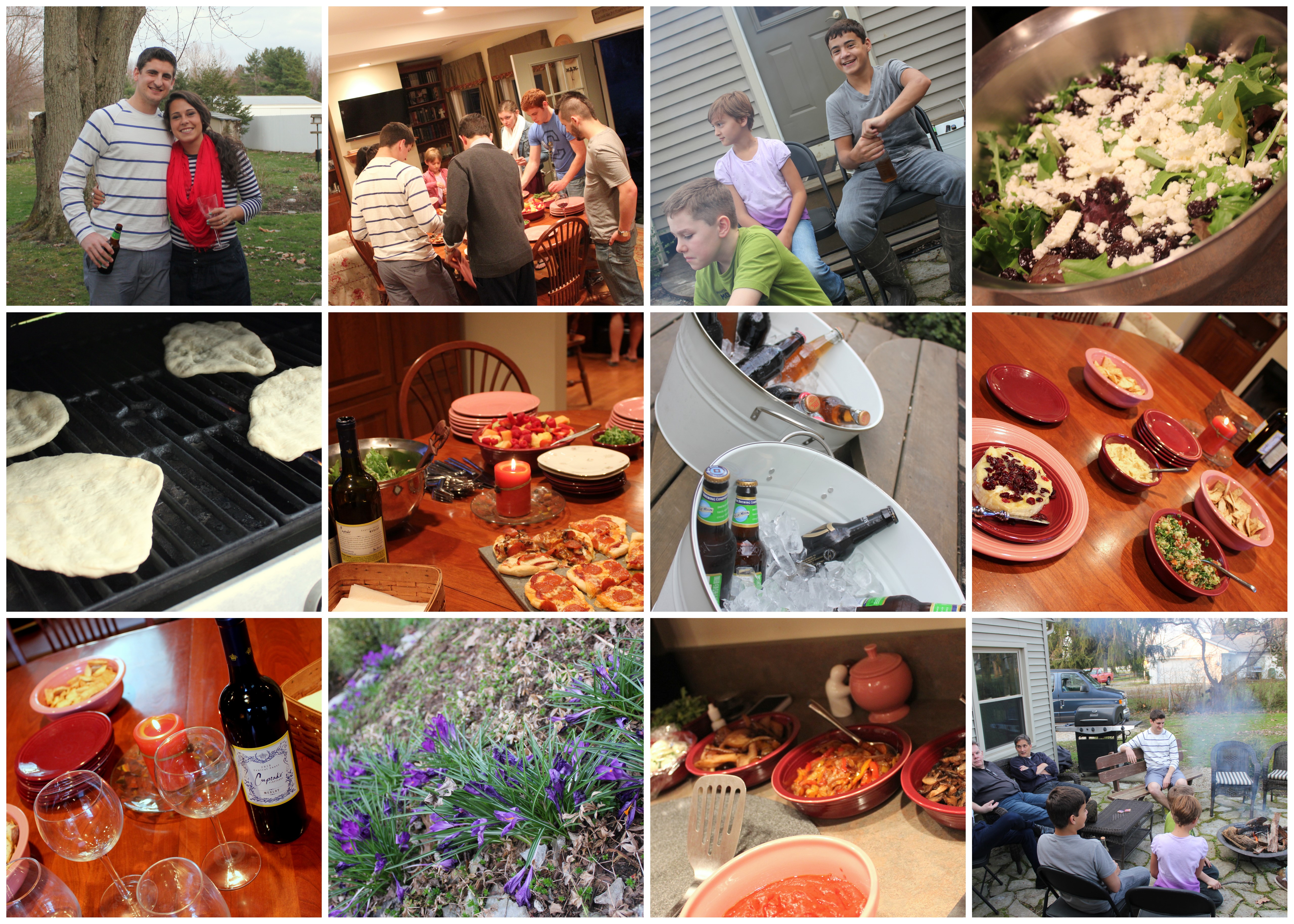 My favorite appetizers, great wine, homemade dough, amazing toppings (including Pear & Gorgonzola) and a cozy fire… sigh. No place like home.