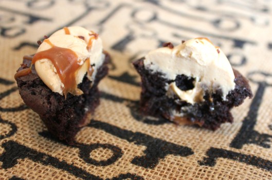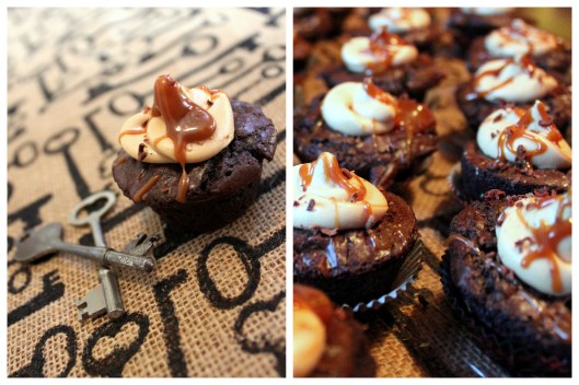 Dark Chocolate Caramel Brownie Bites with Salted Caramel Buttercream